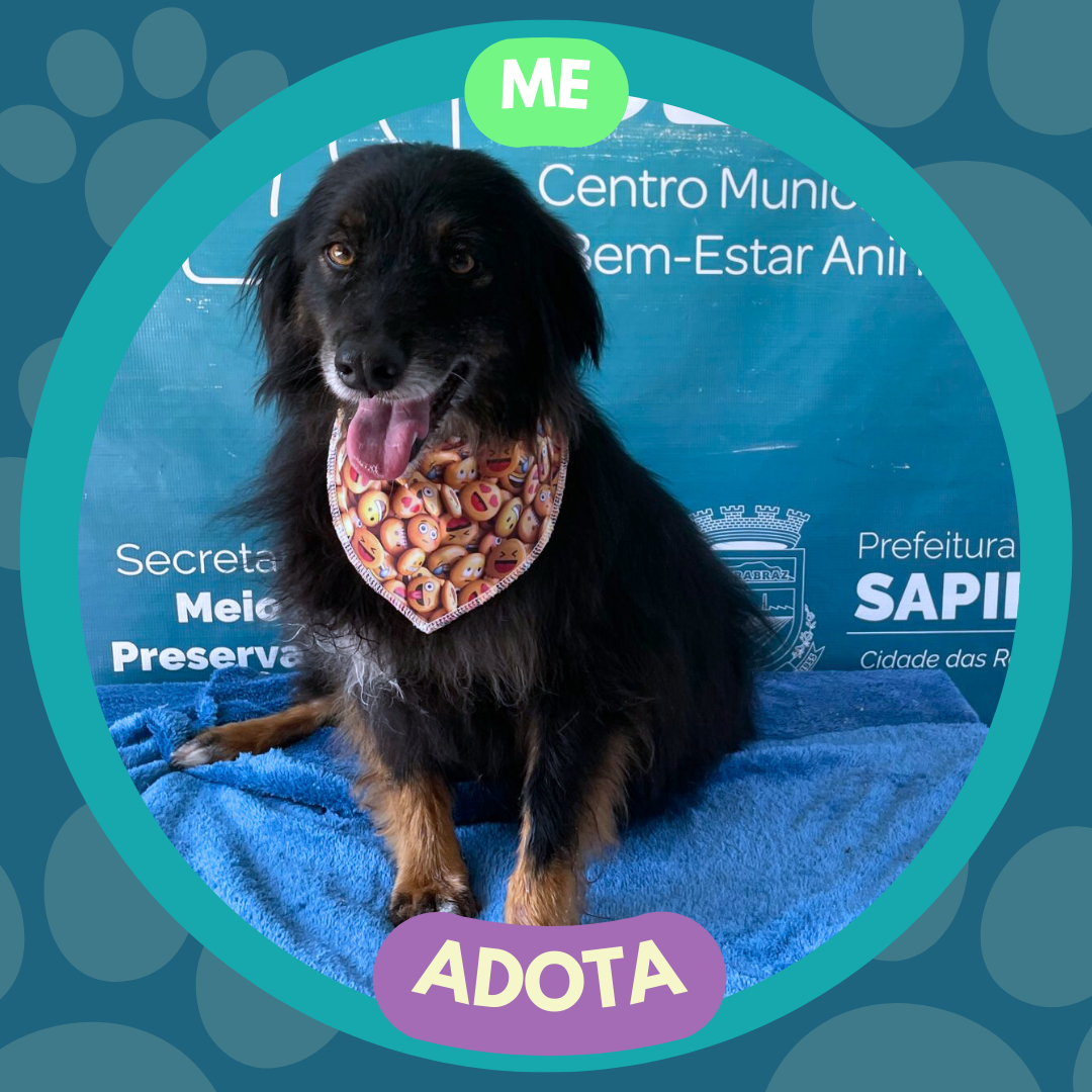 Cão de porte M, macho, castrado. Resgatado filhote, é tímido, mas muito querido. Adora ficar no pátio, calmo e tranquilo, sendo um ótimo companheiro. Irmão da Pretinha, Lady e Bela.