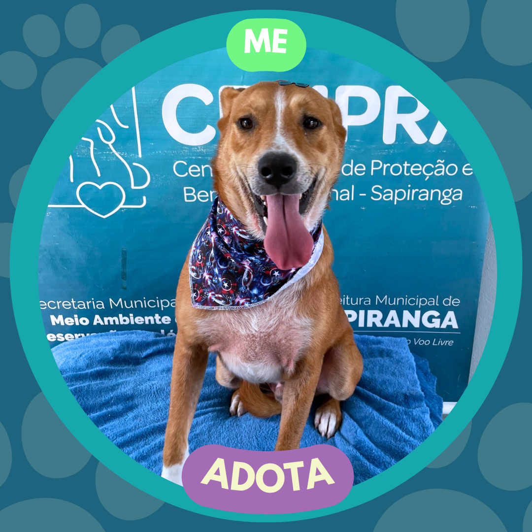 Macho, castrado e de porte M. Resgatado em 2024 com seus irmãos, é um cão super ativo, adora correr e brincar. Se dá bem com outros cães e ama atenção. Procura um lar cheio de amor e carinho.