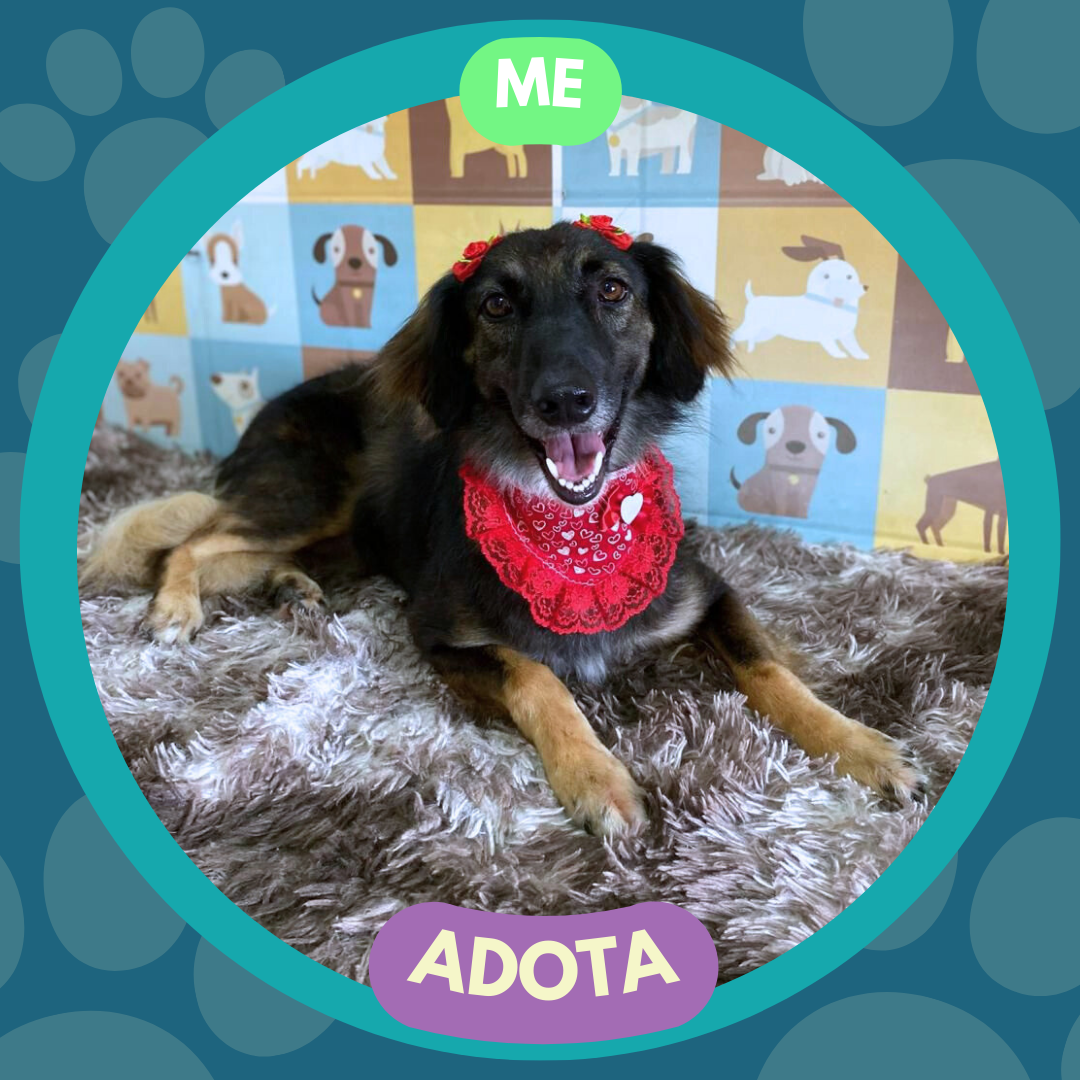 Cão de porte M, fêmea, castrada. Resgatada filhote, tem um olhar encantador e pelo sedoso. Ela adora carinho e atenção, sendo um verdadeiro amor. Irmã de Pretinha, Cagão e Bela.