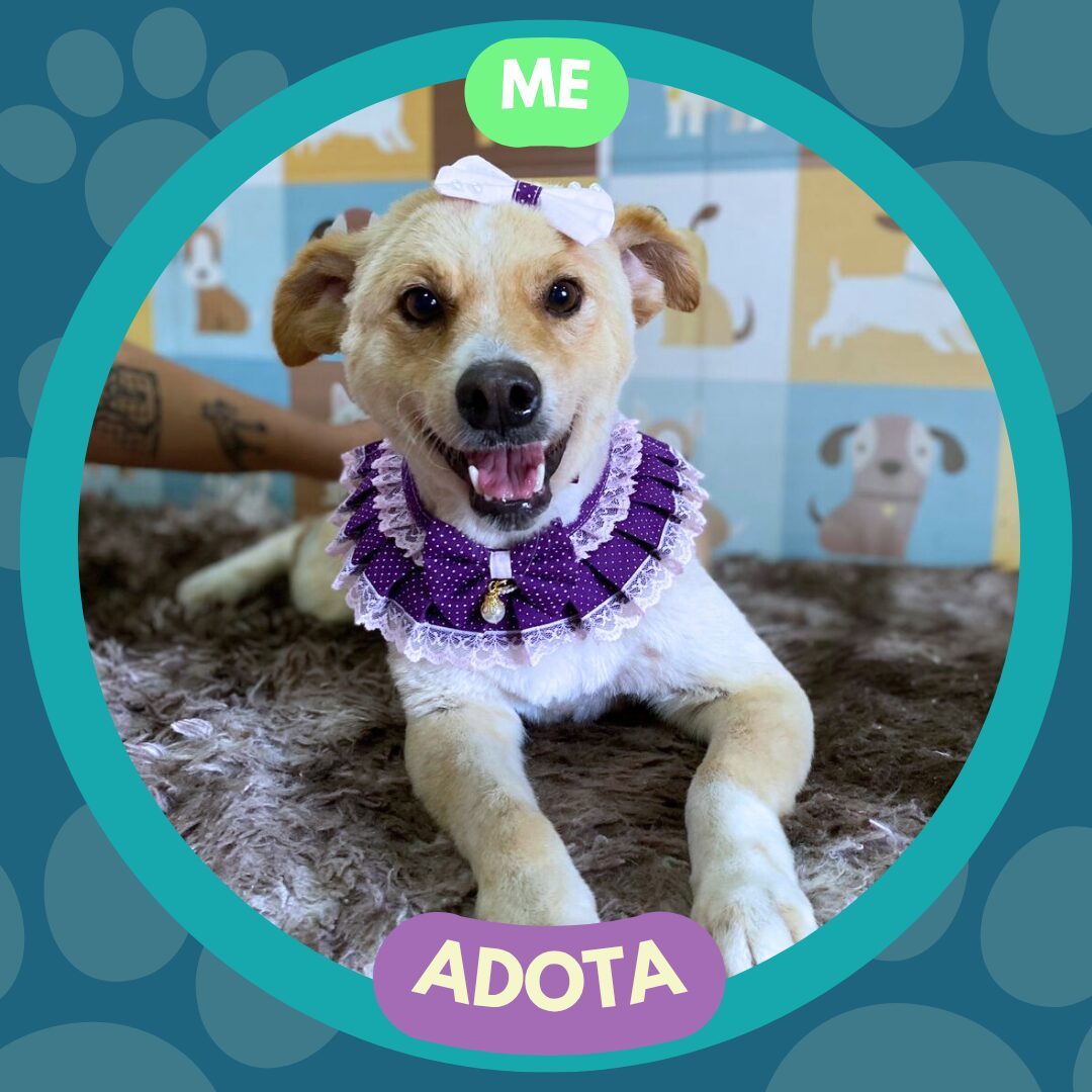 Cão de porte M, fêmea, castrada. Resgatada filhote, adora correr e brincar com outros cães. Muito alegre e divertida, tem uma personalidade encantadora! Irmã do Cagão, Lady e Bela.