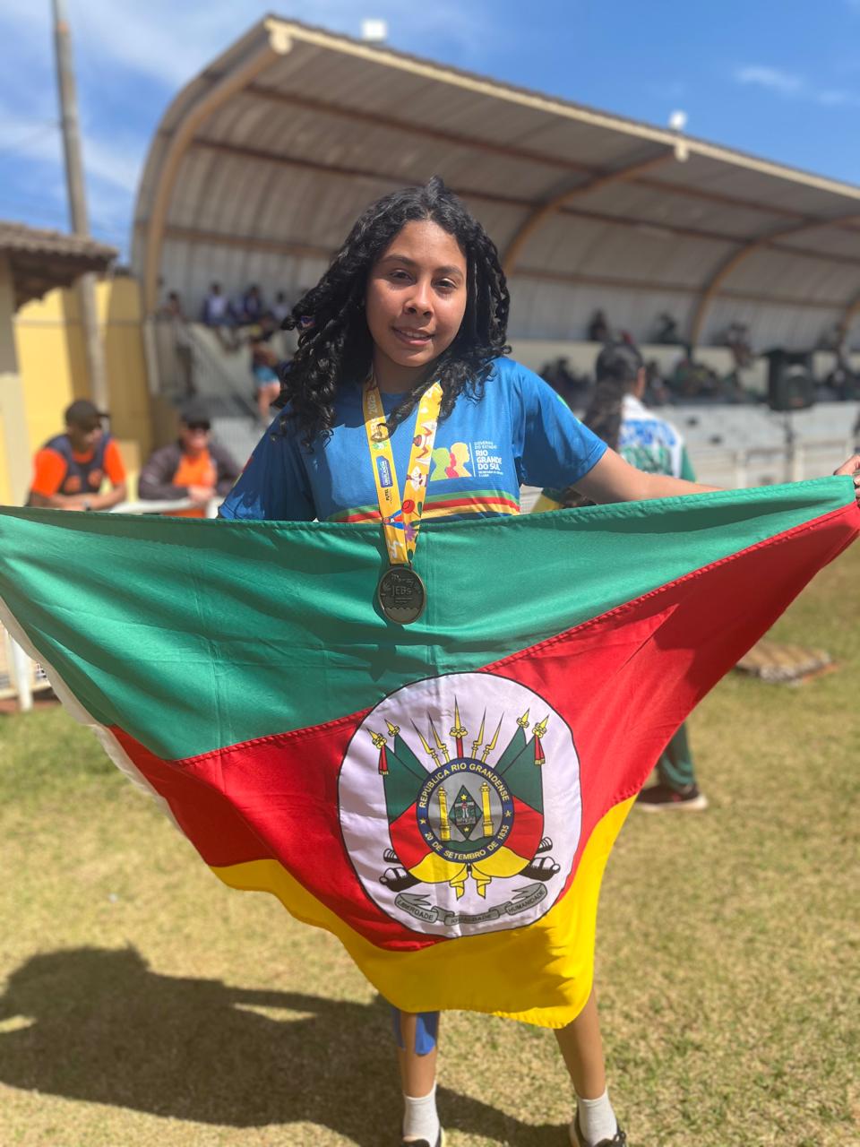 Mais uma vez, atletas sapiranguenses, integrantes do projeto de Paradesporto, conquistaram marcas importantes em uma competição nacional. Os alunos Ana Karolini da Rosa da Silva (Emeb 1º de Maio) e Herick Henrique de Souza Galski (Emeb Floresta) colocaram a bandeira de Sapiranga no pódio dos Jogos Escolares Brasileiros (JEBs), disputados na cidade de Uberlândia/MG.