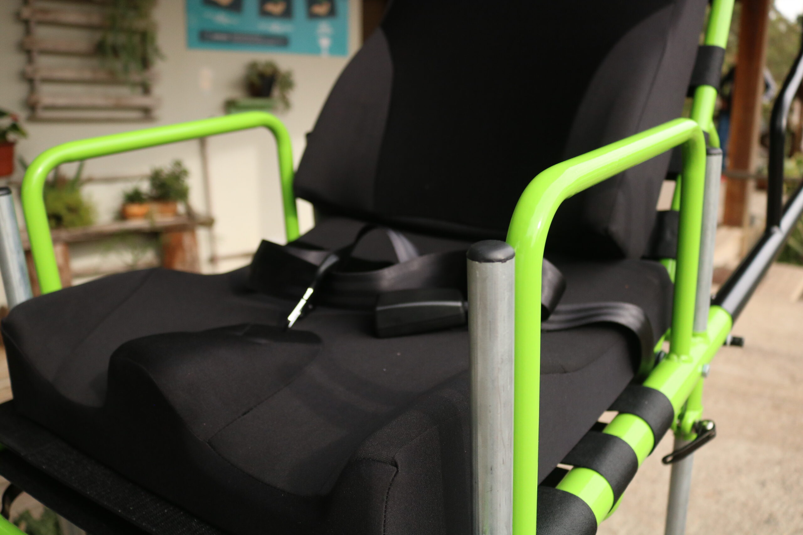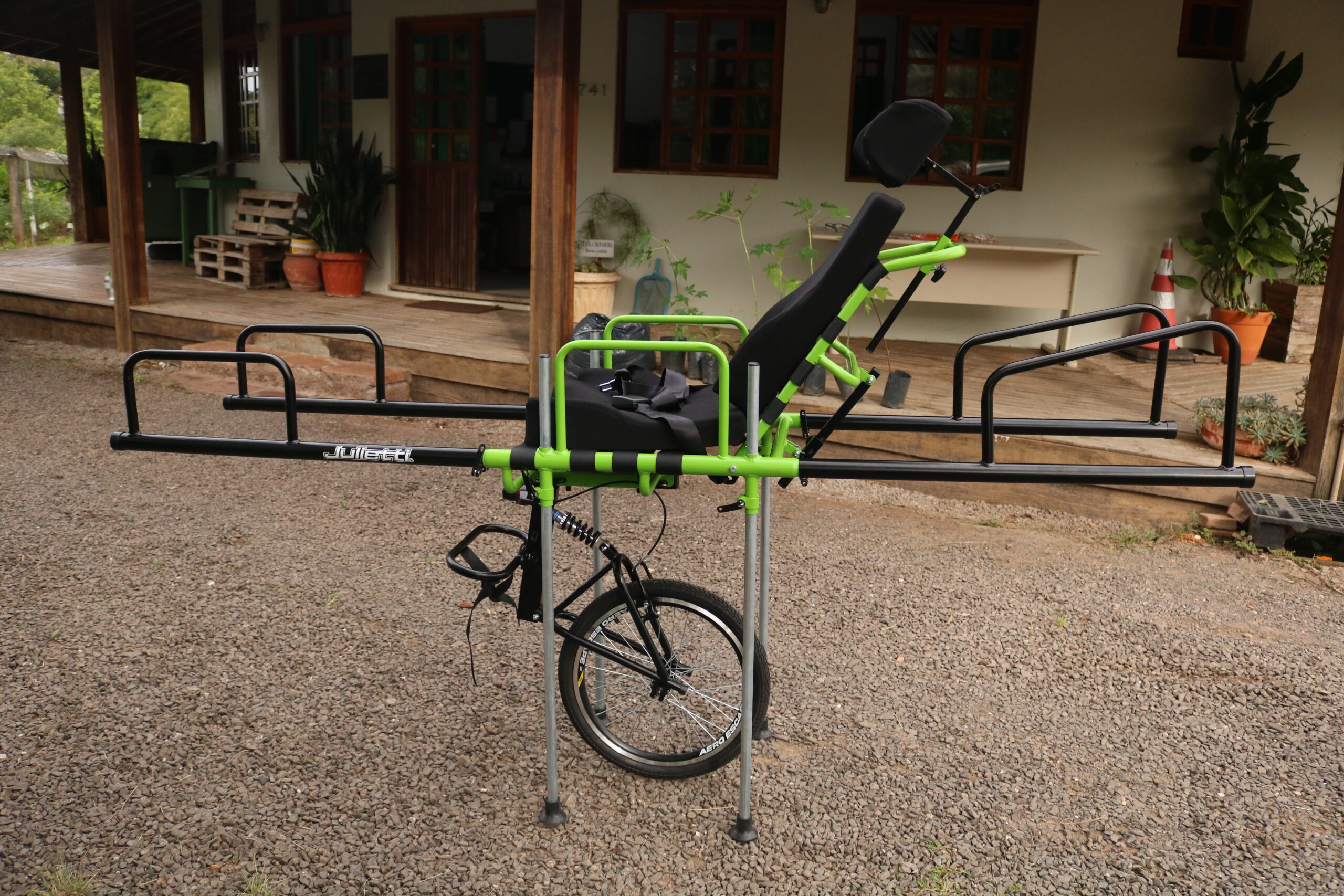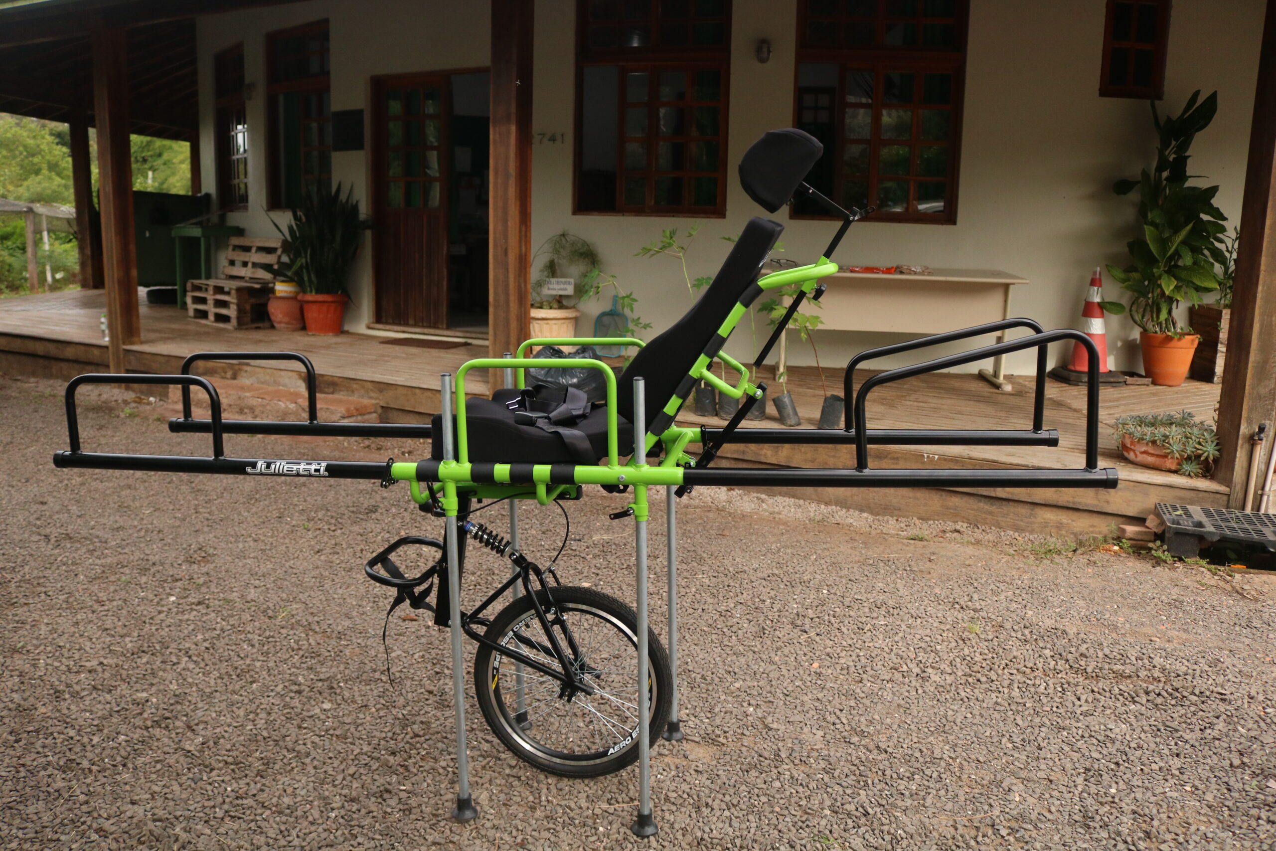 O equipamento é desmontável, possui uma roda com pneu de borracha e amortecedor e necessita de, no mínimo, dois operadores, além do passageiro. O assento fica a um metro de altura, possui encosto e cinto de segurança. O objetivo é permitir que pessoas com deficiência física possam percorrer as trilhas mais desafiadoras. No Cemeam, o equipamento vai ser mais uma ferramenta de inclusão e acessibilidade. “Nós temos aqui vários meios para permitir o acesso dos alunos, fizemos as rampas, procuramos estar sempre incluindo, mas ainda faltava isso: um meio mais prático para o cadeirante chegar aos pontos de acesso restrito como a trilha ecológica e mesmo as hortas e a estufa. A cadeira de rodas, muitas vezes sofre para descer a certos pontos e, com a Julietti, o aluno, o monitor e o professor conseguirão ter mais facilidade”, comemora a diretora do Cemeam Fabiana Haubert.