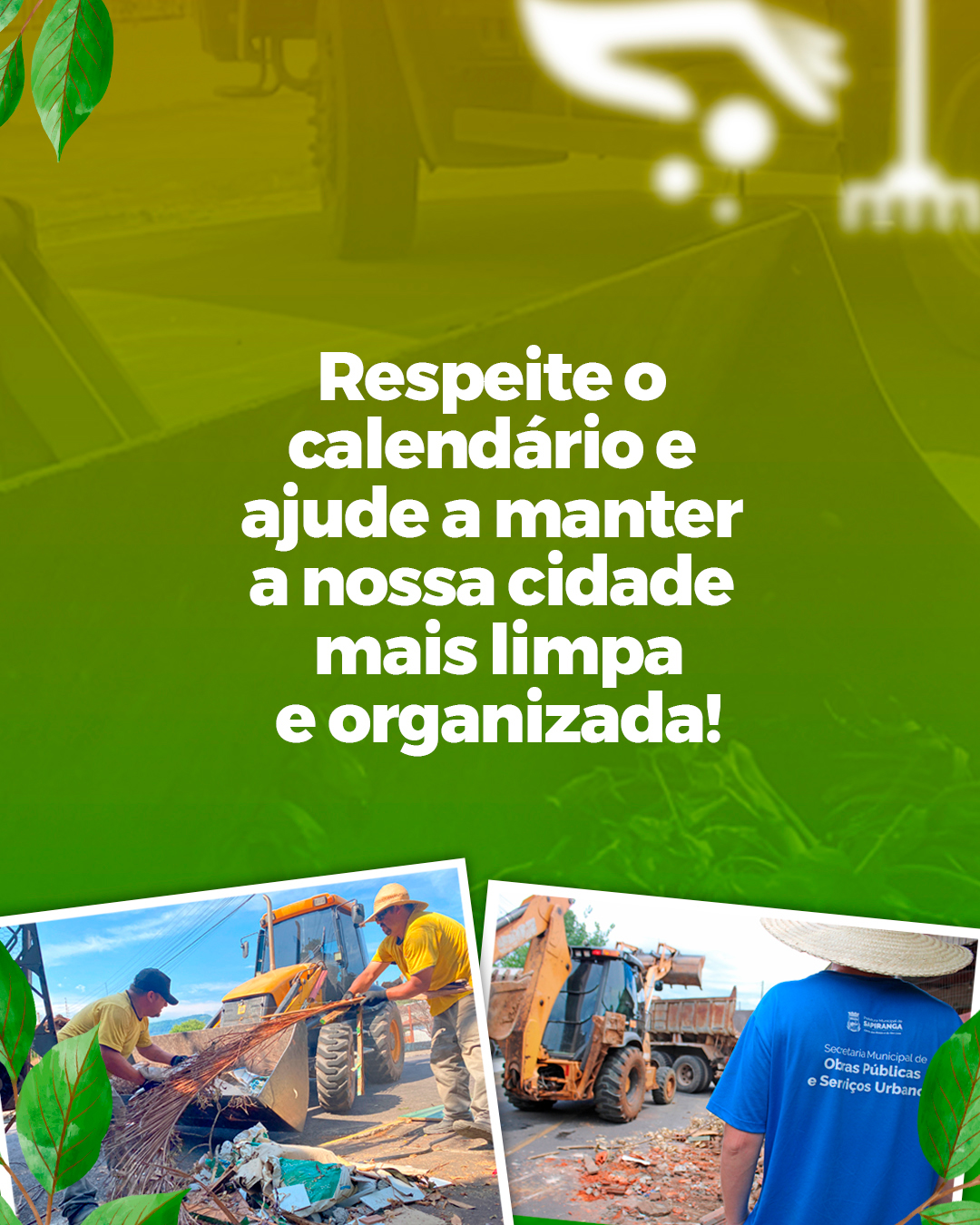 Lembre-se, descartar resíduos em locais inadequados ou deixar materiais na rua fora do período destinado ao bairro pode gerar notificação e multa, conforme prevê a Lei Municipal nº 2.393/1997.