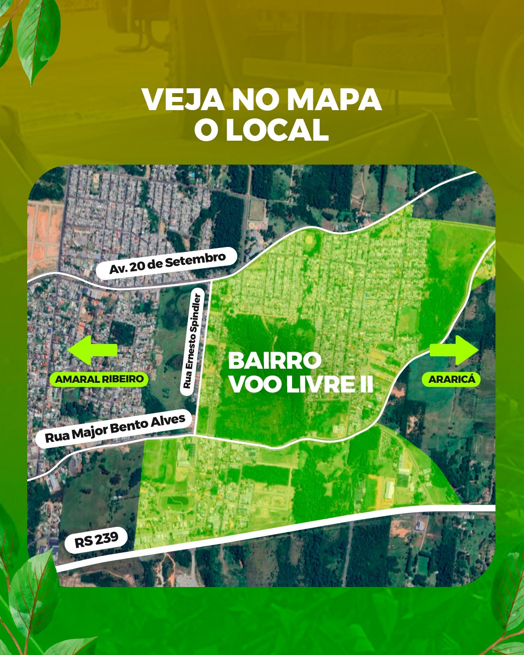 Devido à sua grande extensão, o bairro Voo Livre possui duas etapas de recolhimento: Voo Livre I e Voo Livre II. Nesta semana, o serviço será realizado na segunda parte, que compreende a região entre a Rua Ernesto Spindler e a RS-239 na direção de Araricá.