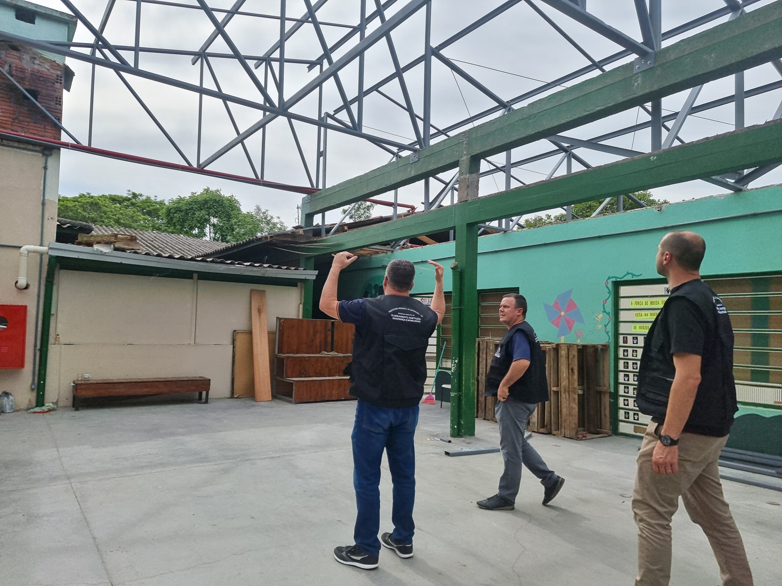 As melhorias serão significativas após conclusão da obra. “Eram muitos os problemas com goteiras. Quando a chuva era forte já sabíamos que teria que proteger os materiais da sala e depois secar tudo para viabilizar a aula. Essa é uma melhoria muito aguardada por toda a comunidade escolar”, destaca a diretora Marqueli Geller. Um ponto importante é que as obras acontecem sem prejudicar as aulas. A ala a oeste, mais próxima do ginásio, já foi substituída, mas a empresa está fazendo a troca por etapas. “Há sim um certo transtorno pois tivemos que realocar os alunos para outros lugares, como a biblioteca. Mas só de saber que depois estaremos com o problema do telhado resolvido, já é um alívio. A escola Waldemar completa neste ano 45 anos de funcionamento e o telhado teve reparos ao longo dos anos mas exigia essa atualização. “O projeto inicial previa a troca do telhado, para as tellhas TP40 metálicas, mas já no início percebemos que o forro também necessita ser substituído então será trocado para o PVC”, lembra o secretário de Planejamento e Habitação, Maurício Regla. Por se tratar de uma obra exposta, o clima precisa ajudar para que os prazos sejam cumpridos, mas a expectativa é que no início do ano letivo de 2026 os alunos já encontrem toda a escola com a nova cobertura.