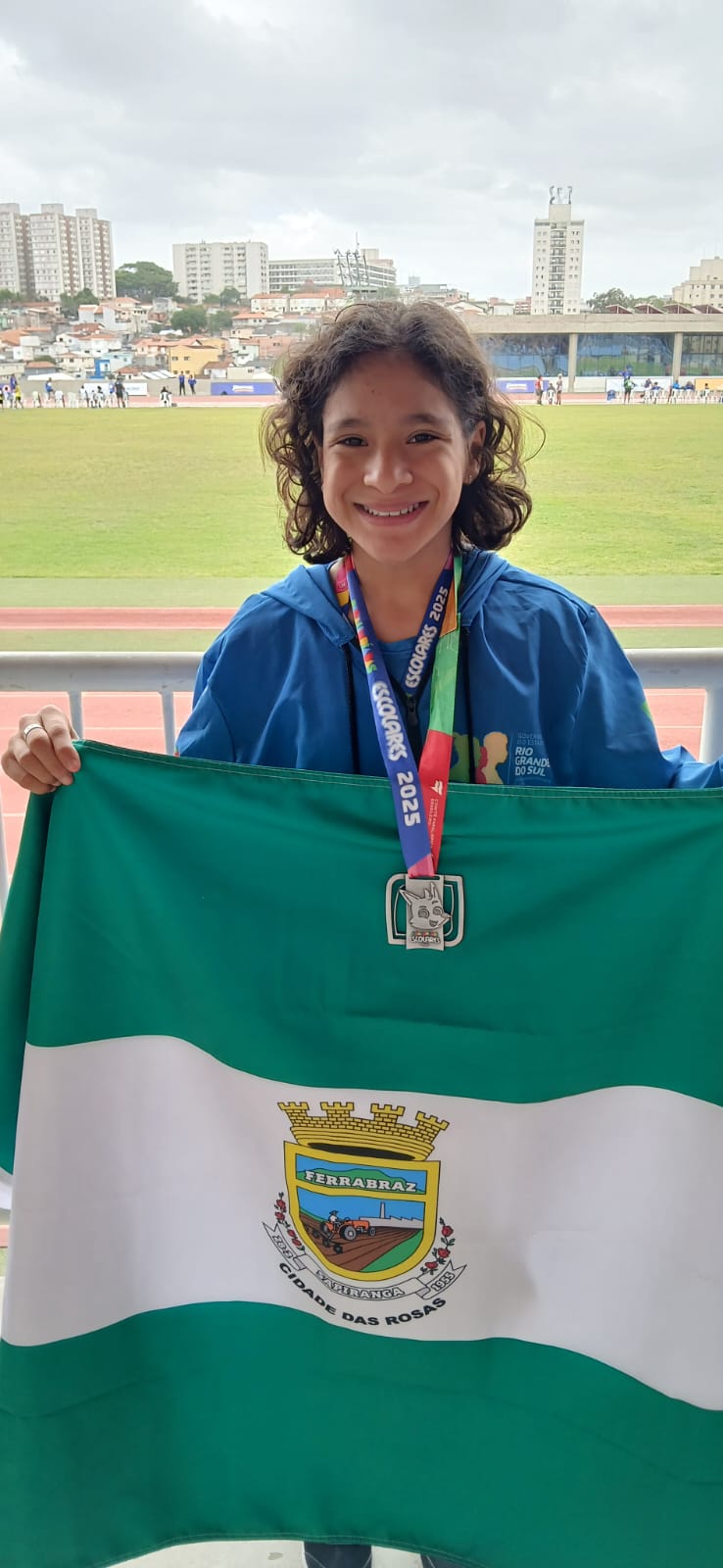 Classificados na fase estadual, os 11 alunos de Sapiranga foram para a fase nacional em São Paulo compondo a delegação gaúcha. A comitiva foi acompanhada pela treinadora do projeto de paradesporto, professora Luciana Sagrillo, a coordenadora de Educação Física da Smed, Priscila Nedel e pela diretora pedagógica Ana Andrioli. “Foi mais um campeonato com saldo positivo para os nossos alunos e para o projeto. Para além das conquistas a vivência proporcionada a eles é um ganho incalculável. Falando em resultados, é muito promissor ver que já temos uma nova geração de paratletas”, destaca Ana. As conquistas somam 3 recordes, 4 medalhas de ouro, 3 medalhas de prata e 2 medalhas de bronze. Veja a lista: