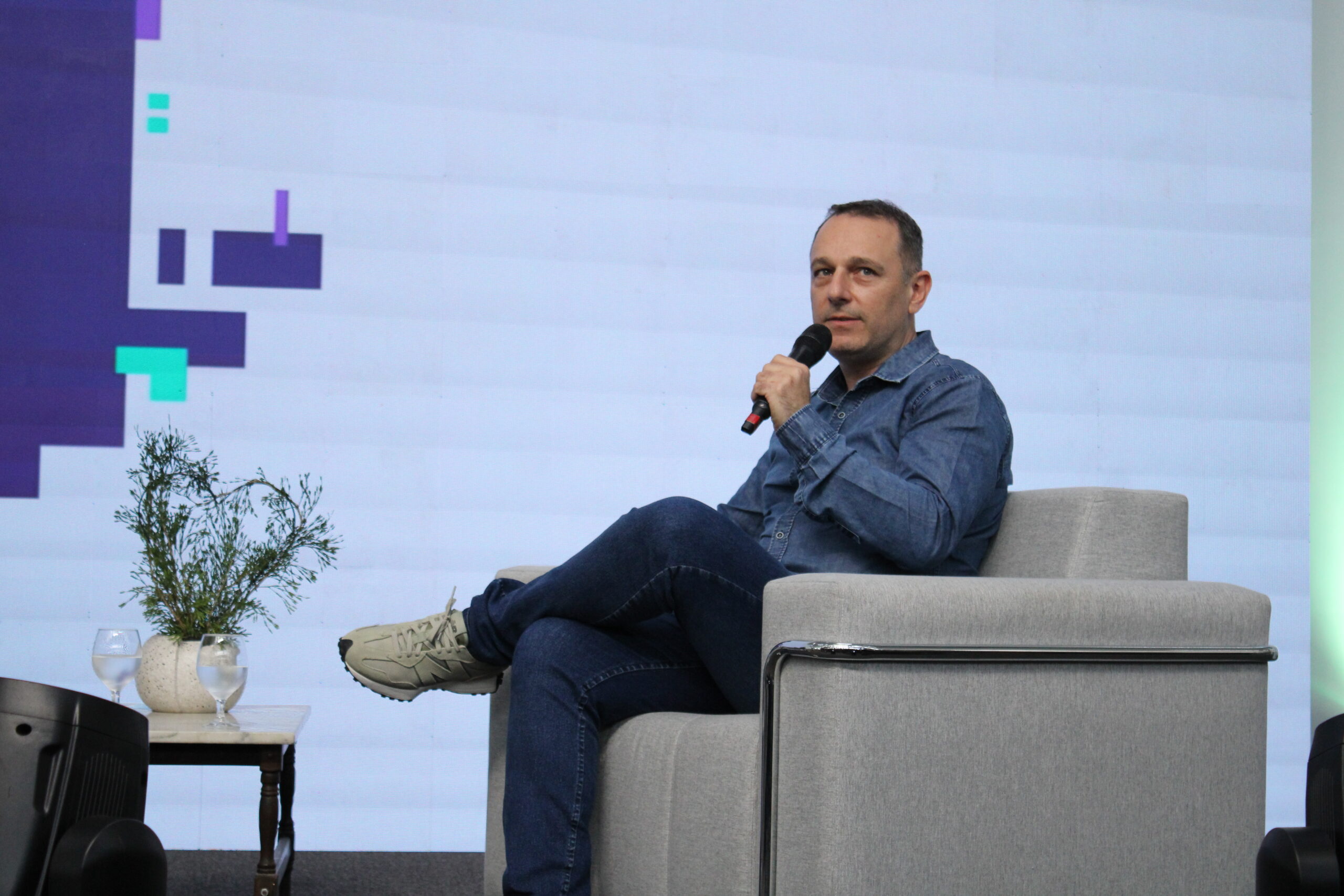 Em seguida, o painel “A Calma do Negócio”, com o designer Fábio Haag (Fonts for Branding), provocou reflexões sobre o ritmo e os modelos de trabalho nas empresas contemporâneas. Defensor de um modelo mais humano e equilibrado, Fábio explicou que é possível unir produtividade e bem-estar. “A gente precisa falar sobre o nosso modelo de trabalho atual. Precisamos repensar práticas que vêm de décadas, às vezes séculos, atrás e muitas vezes não fazem mais sentido nos dias de hoje. No nosso estúdio, aplicamos há nove anos a lógica de uma empresa calma, que trabalha poucas horas por dia, com muita autonomia e confiança nos colaboradores. Algo complexo, porém possível de ser feito”, ressaltou o designer.