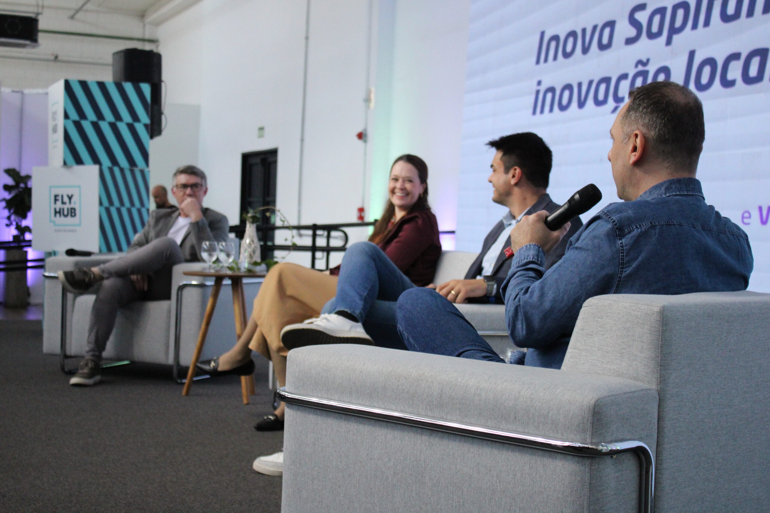 O primeiro painel, “Inova Sapiranga: inovação local, impacto global”, mediado por Flaviano Gastão (F2 Conexões), destacou a importância da colaboração entre poder público, comércio e instituições de ensino. Manuela Bruxel (Universidade Feevale) destacou que “atualmente a inovação está bem difundida e é possível enxergar como as pessoas e as empresas trabalham juntas nesse movimento, abarcando diversas áreas como sustentabilidade e desenvolvimento econômico”. Já Vinícius Santos (Secretaria de Indústria, Comércio e Tecnologia) ressaltou que o olhar inovador da gestão municipal “jamais deixa de lado os setores produtivos, como indústria, comércio e agricultura”. Para Ademir Deitos (CDL Sapiranga), o Fly.Hub simboliza esse espírito colaborativo. “Aqui, no Fly.Hub, é um dos investimentos que a CDL faz porque acreditamos que aqui todo mundo tem acesso e consegue aproveitar esse espaço”, ressaltou o presidente da entidade.