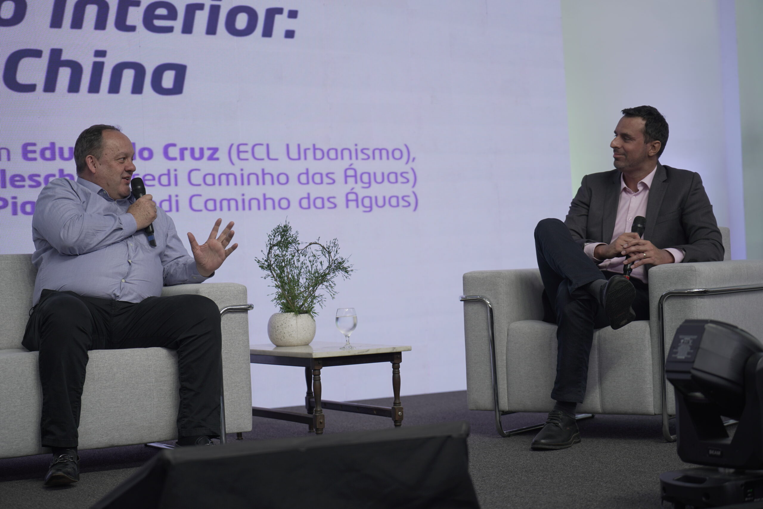No segundo painel, “Do exterior para o interior: aprendizados da China”, o público foi convidado a olhar para fora e pensar como experiências internacionais podem inspirar transformações locais. Mediado por Gustavo Piardi (Sicredi Caminho das Águas), o painel teve como convidados Edson Ledur (ECL Urbanismo) e Felipe Arthur Flesch (Sicredi Caminho das Águas). Em sua fala, Felipe refletiu sobre a importância da estratégia aliada à persistência. “Quando você une intensidade e estratégia, o resultado aparece. E isso é ser obstinado, trabalhando tanto para cada vez mais ser estratégico”, ressaltou o profissional.