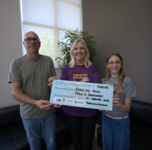 Pablo recebeu o cheque simbólico das mãos da prefeita Carina Nath