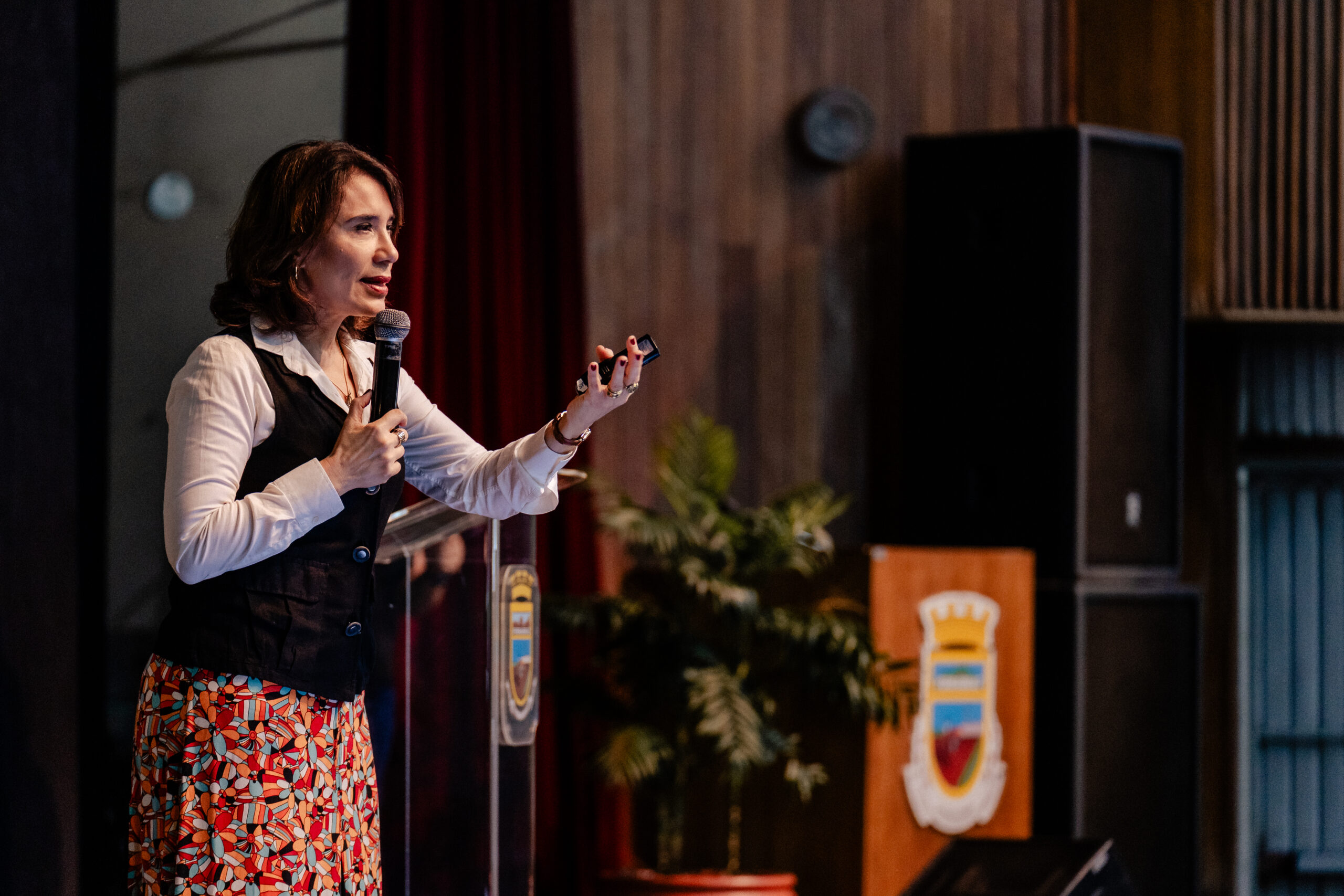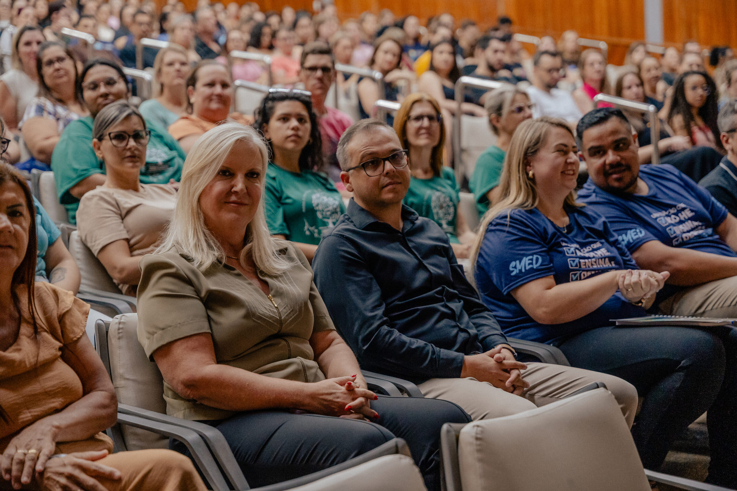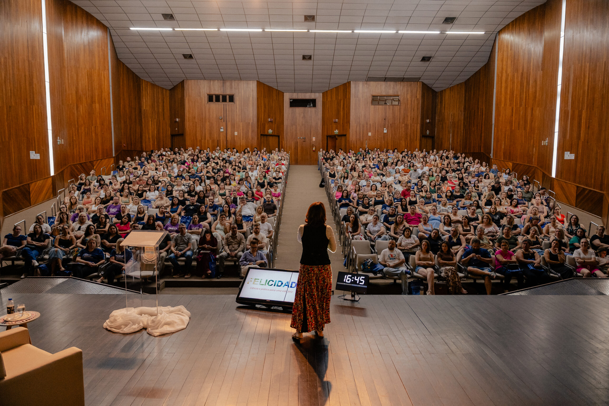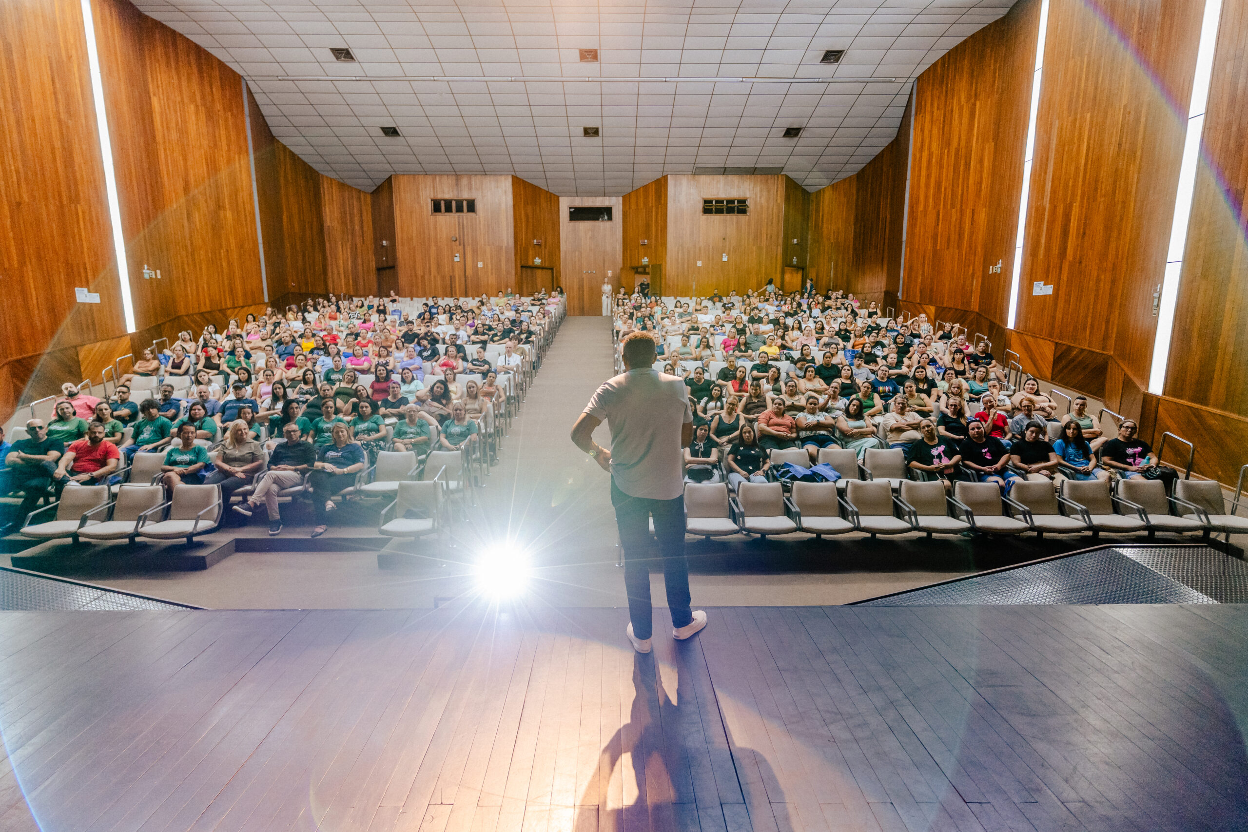 Na quinta-feira (12), foi a vez de aproximadamente 970 professores, diretores e vice-diretores participarem da programação. A Dra. Ana Beatriz Barbosa conduziu a palestra “Felicidade: Ciência e prática para uma vida feliz – Acolhendo professores para uma Educação mais humana e eficaz”, trazendo reflexões profundas sobre saúde mental e propósito.