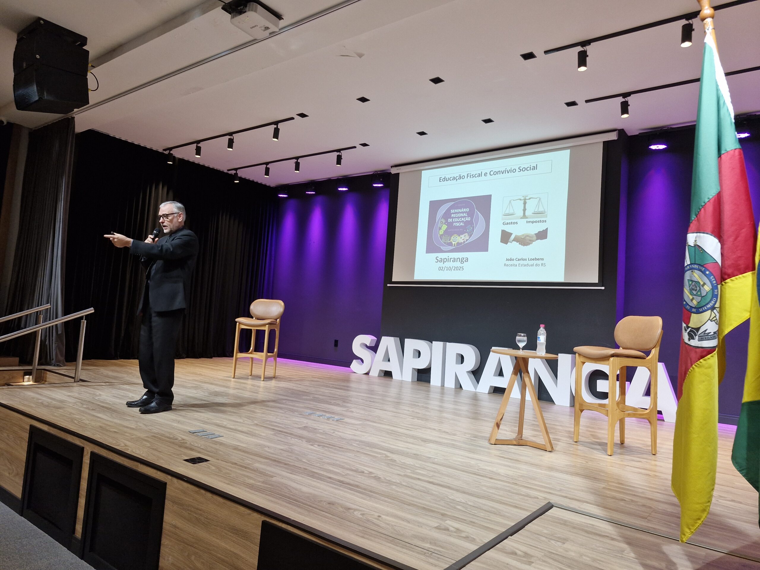 Foram quase 120 participantes, entre agentes fiscais e educadores, de cidades de todo o estado como Santana do Livramento, Salvador do Sul, Bento Gonçalves e Cachoeirinha. Ao todo, além de Sapiranga, mais 30 municípios tiveram representantes no evento. O conteúdo, voltado para a conscientização sobre a função social dos tributos e a importância da cidadania fiscal trouxe nomes de referência como João Carlos Loebens (auditor-fiscal da Receita Estadual), Tamara Dentee (analista tributária da Receita Estadual), Alcides Seiji Yano (delegado regional da Receita Estadual), Wilmar de Souza Lima e Maria Carine dos Reis Scheuermann (consultores da Essencial Assessoria). Na fala de boas-vindas, o vice-prefeito de Sapiranga, Caleb Santos, ressaltou a importância do evento “Como empresário, eu sei da importância da boa aplicação dos tributos. E reforço como gestor público, reforço: cada recurso bem investido faz diferença na vida das pessoas. Por isso, eventos como este, são fundamentais para esclarecer alguns mitos e incentivar a educação fiscal ainda na fase escolar”, disse.