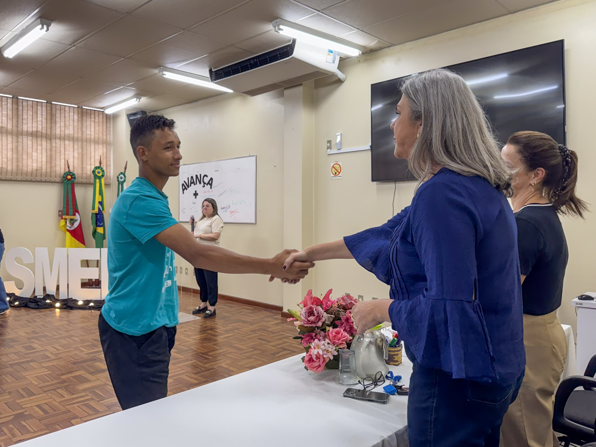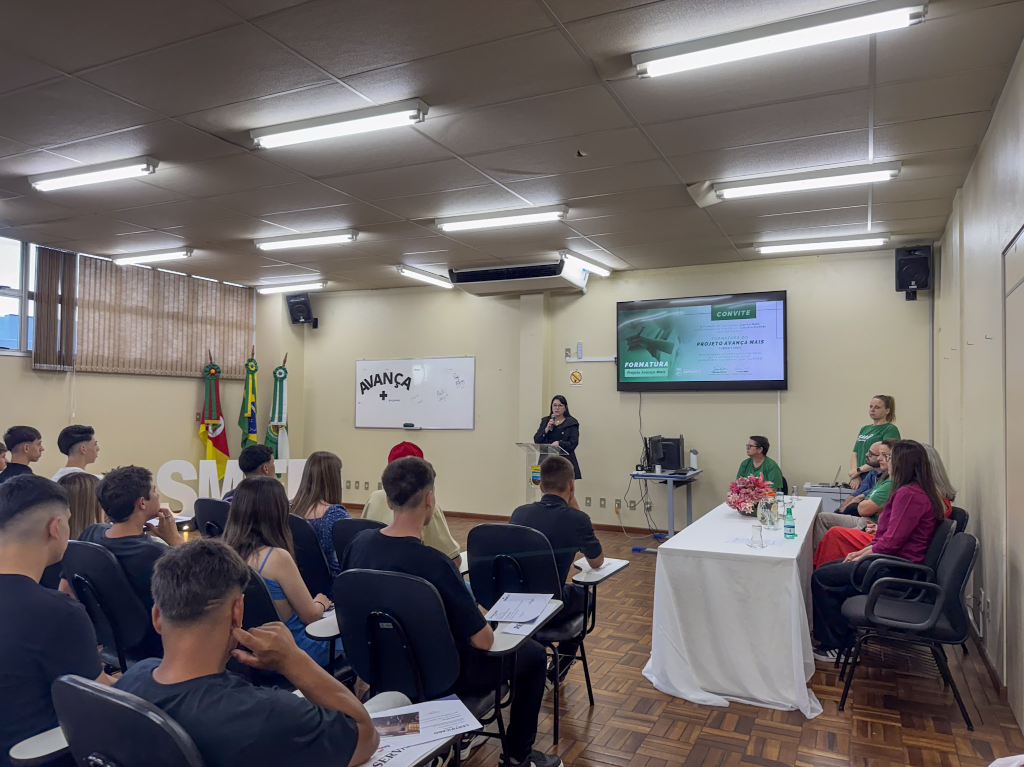 As formaturas do Projeto Avança Mais ocorreram na terça-feira (9) e na quinta-feira (11), no auditório Jacobina Maurer, com a certificação de 77 estudantes da rede municipal. Implementado no segundo semestre de 2025, o projeto é uma iniciativa voltada ao enfrentamento da distorção idade-ano de alunos do 6º ao 8º ano, com 15 anos ou mais, que se encontravam em defasagem escolar. O objetivo é possibilitar a conclusão do Ensino Fundamental, o ingresso no mercado de trabalho e a continuidade dos estudos na idade adequada. Durante o período de preparação, os alunos também participam de um curso em parceria com o Senac, voltado à capacitação para o mercado de trabalho.