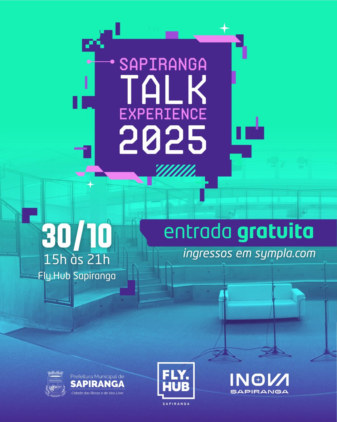 Evento de inovação ocorre em 30 de outubro, no Fly.Hub, com entrada gratuita; ingressos disponíveis na plataforma Sympla